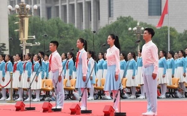 节日里的天安门广场,炮声隆隆,红旗猎猎,鎏金党徽光芒万丈!礼堂里的党员干部、积极分子,胸佩党徽、庄严端庄,目光紧紧锁住屏幕,心潮澎湃激昂!