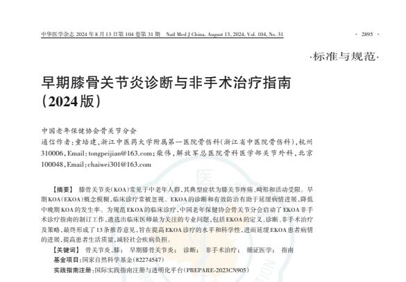 2024年8月13日,《早期膝骨关节炎诊断及非手术治疗指南(2024版)》正式见刊于中华医学杂志。复方南星止痛膏、筋骨止痛凝胶双双获列名推荐,同时也是筋骨止痛凝胶准入的首部指南。